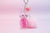 This is a Mocallure Shimmer High-Shine Moisturizing Lip Gloss in a bunny-shaped container with a pink pom-pom keychain.